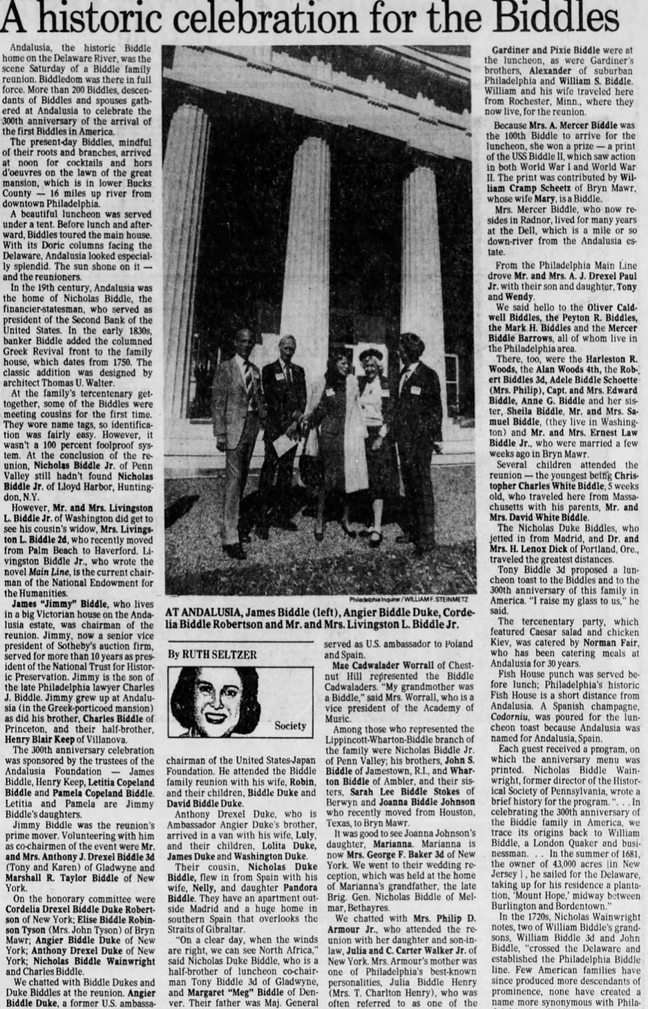 Nicholas Biddle’s nephew Jamie Biddle’s (1929) wife’s great-great grandfather Éleuthère Irénée du Pont de Nemours founded Du Pont